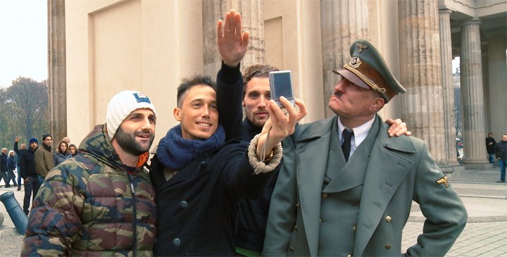 Così si concludono le riprese del film di “Er ist wieder da“, con il personaggio di Sawatzki che, riconosciuto Hitler, lo porta sul tetto di un palazzo per sparargli; qui Hitler ha con il vecchio amico un dialogo in cui spiega la sua visione di come sono andate le cose: “Sawatzki lei non capisce, nel 1933 nessun popolo è stato ingannato da nessuna propaganda, mi hanno scelto come führer e avevo espresso le mie idee con molta chiarezza”, come per richiamare la responsabilità di un popolo e non solo del singolo individuo, e poi “una sola domanda: lei si è mai chiesto perché il popolo mi segua? Perché in fondo siete tutti come me.” A queste parole Sawatzki spara, ma il “führer”, un attimo dopo essere caduto con una pallottola nello zigomo, ricompare dietro Sawatzki dicendo “Non si può liberare di me, sono una parte di lei, di tutti voi. Lo riconosca: non sono poi così male”. Perché questa frase? Si riconosce in sostanza una sorta di piccolo demone che sta dentro ogni europeo, quel piccolo demone – qui rappresentato dallo spettro di Hitler – che spinge l’uomo del Vecchio Continente a dire “che se ne tornino da dove son venuti” o “gli ebrei dovrebbero essere controllati” o “gli immigrati ci rubano il lavoro”.
