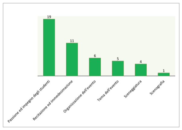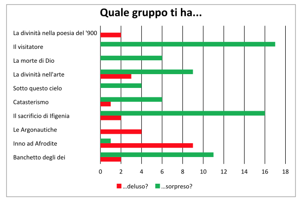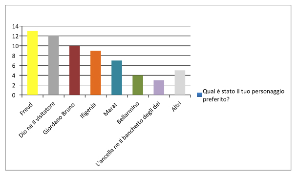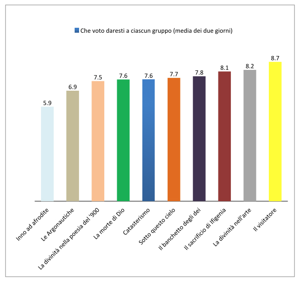 I risultati del sondaggio mostrano un maggior gradimento da parte del pubblico rispetto all’anno scorso e una maggiore affluenza, mentre i voti ai singoli gruppi sono in lieve calo. Dobbiamo inoltre fare i complimenti ai ragazzi del gruppo di Freud, che ha dominato le “classifiche” di questi giorni classici. Bravissimi!