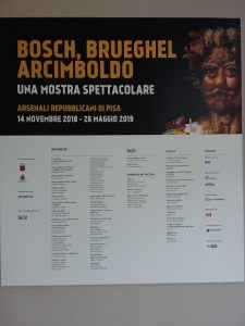 Quella organizzata agli Arsenali Repubblicani di Pisa su Bosch, Brueghel e Arcimboldo non è una mostra. È sicuramente tutta un’altra cosa; più simile a un rave party dato il ritmo incalzante della musica e i giochi di luce, a un rendez-vous, a un misterioso ritrovo di quelli in cui il luogo e l’ora si spargono in rete, lanciati da non si sa chi né perché e a cui in molti alla fine vanno solo perché si sa che ci sarà e che forse sarà divertente.