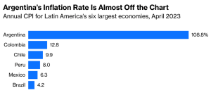 Grafico 2: tasso di inflazione nelle principali 6 economie latinoamericane ad aprile 2023
