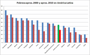 Grafico 1: Percentuale di povertà nei paesi Latinoamericani nel 2000 e nel 2010. Fonte: Cepal